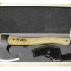 De bijl wordt geleverd inclusief een zwarte lederen schede met riemlus.