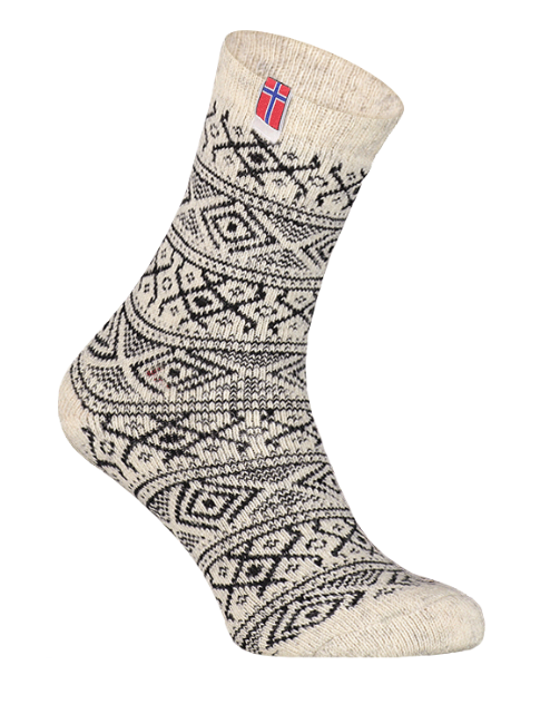 Dikke heerlijk warme sokken. Voorzien van een ingebreide Deense vlag. 80% scheerwol, 10% polyester, 7% polyamide, 3% elastaan.