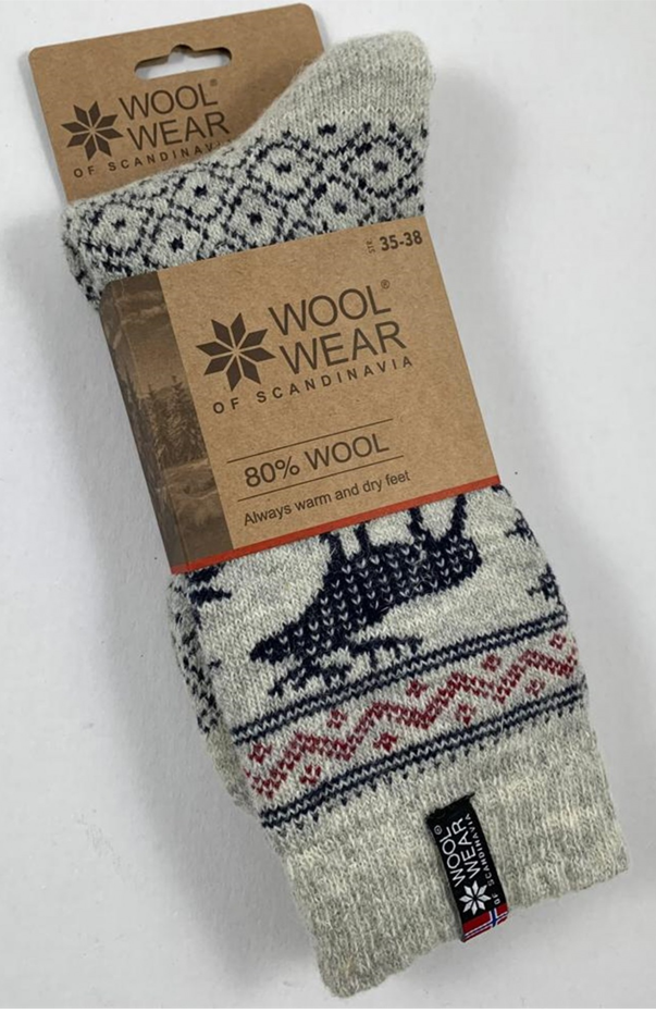 Wollen sokken van WOOLWEAR uit Scandinavië met een leuk eland motief. Deze wintersokken zijn van een extreem zachte en heerlijke 80% wol in een superieure kwaliteit.