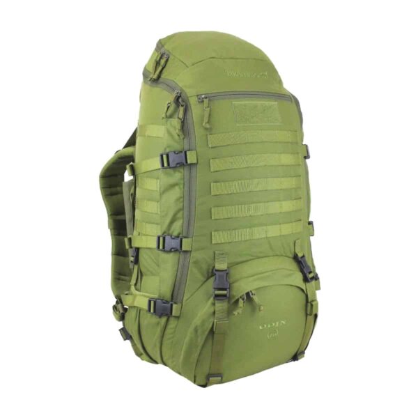 The ODIN 75 Litre mission pack uses a modern design with a single main compartment storage area and additional storage location on the lid, sides and front. An A4 folder may be stowed in the pocket located on the front or back of the bag. Additional pouches may be attached by using the side PLCE zips & MOLLE system with webbing present on the sides, front & internal.