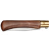 De Old Bear heeft een geoliede walnoothouten greep. De beveiliging tegen ongewenst dicht- en ook openklappen lijkt op die van Opinel, en functioneert zeker niet minder.