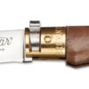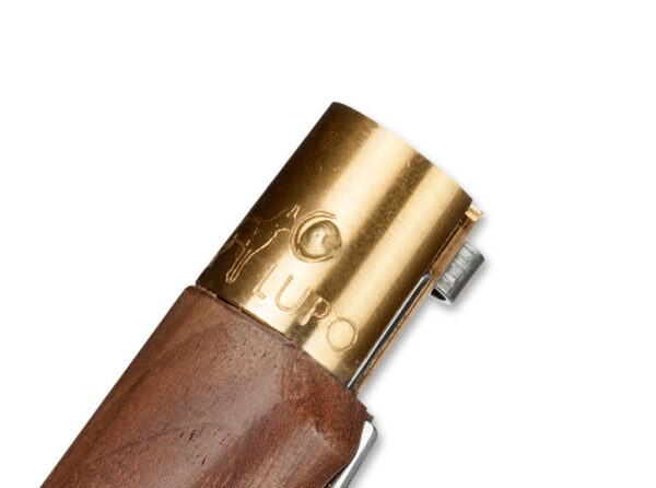 The centerpiece of the knives are the oiled walnut handles that support the traditional locking mechanism. A rotating ring inserted into the brass collet secures the blade in the deployed as well as closed position. As the active partner for this project, Todesco (Maniago/Italy) had already patented this mechanism in 1985 as a pocketknife lock.