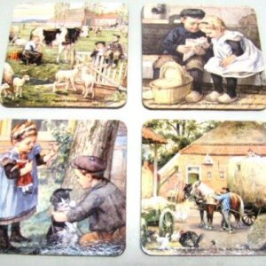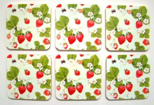 Set van zes onderzetters. Kurk bodem. Afneembaar met een vochtige doek.