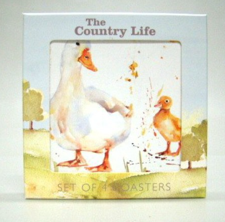 Set van vier onderzetters. Kurk bodem. Afneembaar met vochtige doek.