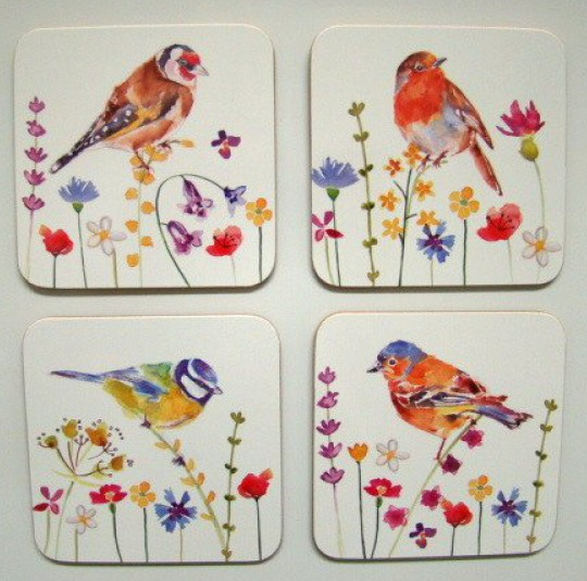Set van vier verschillende onderzetters. Kurk bodem. Afneembaar met vochtige doek.