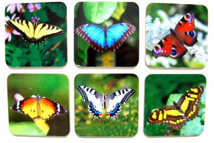 Set van zes verschillende onderzetters. Kurk bodem. Afneembaar met een vochtige doek.