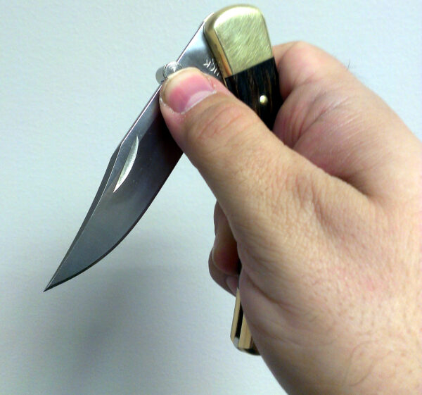 One Arm Bandit duimknop bevestiging. Maakt het gemakkelijk om zakmessen met één hand te openen – Inclusief inbussleutel. Te bevestigen aan het lemmet van een vouwmes. Voor dikkere lemetten.
