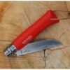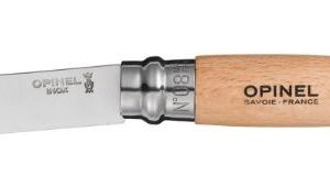 – Staalsoort: Sandvik 12C27M roestvrij staal. Het gemodificeerde 12C27-roestvrij staal van Sandvik, ontwikkeld voor Opinel, staat bekend om zijn scherpte en onderhoudsgemak. Roestvrij staal dat de warmtebehandeling heeft ondergaan waardoor het zijn goede hardheid krijgt, wordt martensitisch genoemd. Het heeft een koolstofgehalte van minimaal 0,40% waardoor een zeer bevredigende snijkant wordt verkregen zonder gevoelig te zijn voor corrosie Staal hardheid 57-58 HRC.