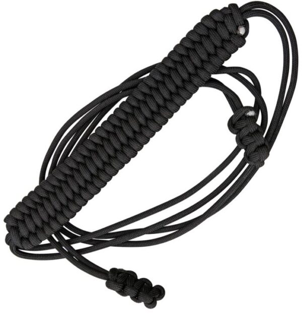 Paracord slinger. Handgeknoopt. Slinger er steentjes mee weg. Na wat oefening kun je er een boom mee raken. Tip: onderhands slingeren, dan één uiteinde loslaten. David velde Goliath met een slinger!