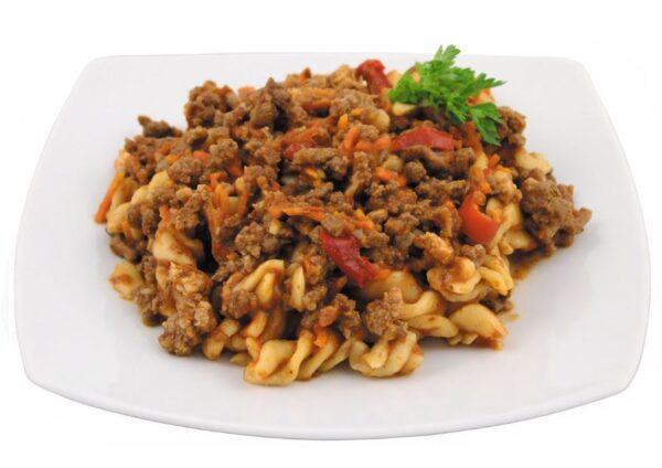 Pasta met Bolognesesaus. Zeer lang houdbaar.