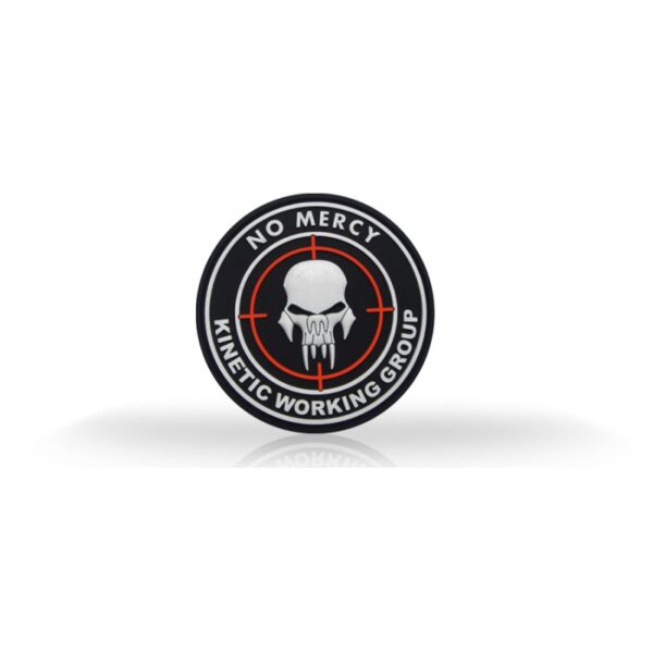 No Mercy, Kinetic Working Group Patch. 3-Dimensionale gummi patch met klittenband op de achterzijde. Glow-in-the dark uitvoering. Even opladen met zon- of lamplicht en hij zal langere tijd licht geven in het donker.