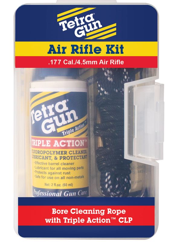 De Tetra Gun Air Rifle Kit is een stevige en compacte container met essentiële reinigings- en verzorgingsproducten voor persluchtwapens. Het bevat een verzorgende, in siliconen gedrenkte doek voor de buitenkant, een fles Tetra Gun Triple Action CLP reinigings- en smeervloeistof,