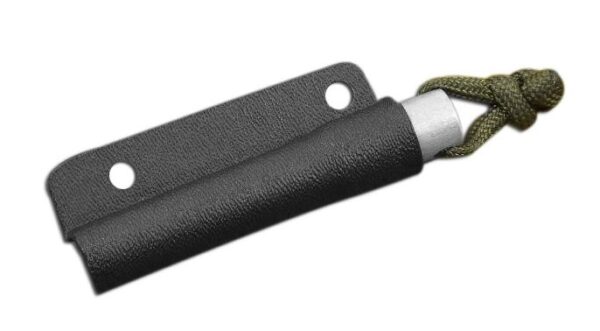 This piggyback kydex carrier is hand made, of moulded kydex. It holds the tops emergency 3 rod fire starter and has 2 mounting holes. The top hole is pre-made and the second hole is left for you to make. This way it will fit your own sheath. The piggyback comes with 2 mounting screws, and fits most manufacturer’s kydex sheaths. The piggyback setup holds close to the body of the sheath. The firestarter can be pulled out for use fairly easily. This does not require great technical skill. However if you don’t know how to use a small wrench… Don’t buy it….you can wear the firestarter around your neck instead. This is an interesting innovation for guys who like piggybacking their gear. …And most of all…if youÂ’re in an emergency situation….you’ll be glad you have it available.