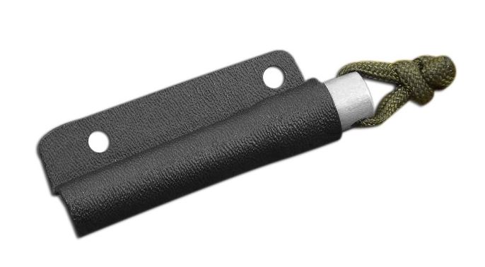 De Piggy Back is een handgemaakte kydex houder met een vuurstaal. De houder kan op de meeste kydex messenschedes geschroefd worden met de meegeleverde schroeven. Een gaatje is reeds gemaakt, de andere kun je zelf op de juiste afstand aanbrengen. Is dit te ingewikkeld, of wanneer het mes geen kydex schede heeft, dan kun je de Piggy Back ook om je hals hangen.