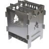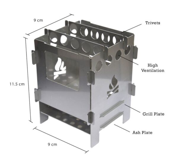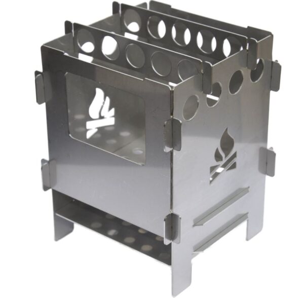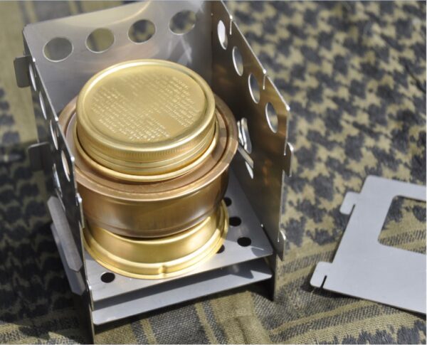 – Kan werken met hout, spiritusbrander, waxinelicht, esbit of hexamine.