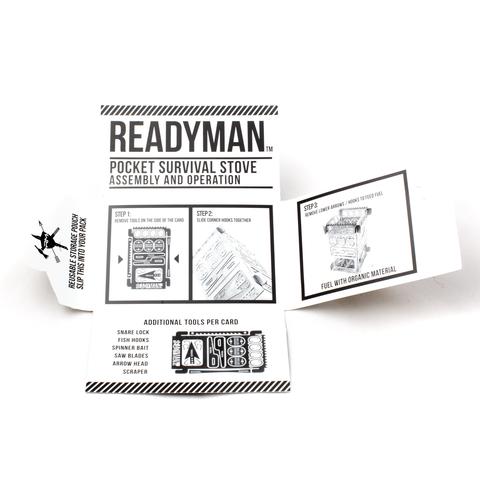 The READYMAN Pocket Survival Stove 2.0 is small and light enough to fit in a pant pocket yet it can be quickly assembled to focus flames to boil water in minutes. We took feedback from our customer and redesigned the pocket survival stove to up the “Survival Utility” of the stove by including fish hooks, snares and an arrow head built into each side. Once assembled, the stove burns readily available fuel (sticks, grass, bark etc) and offers wind protection to drastically improve the odds of keeping your fire burning.
