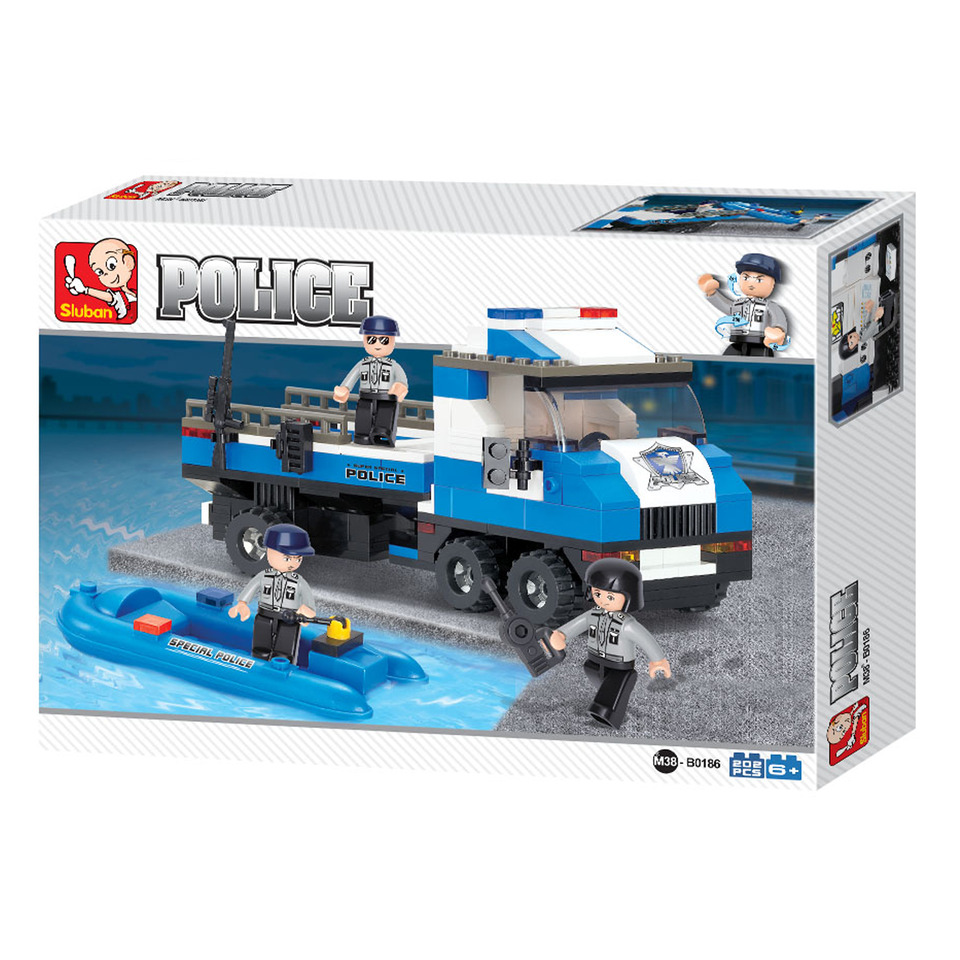 Sluban bouwdoos politietruck B0186. Inhoud: 202 stukjes, 3 poppetjes.