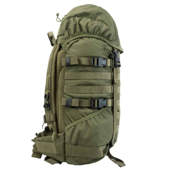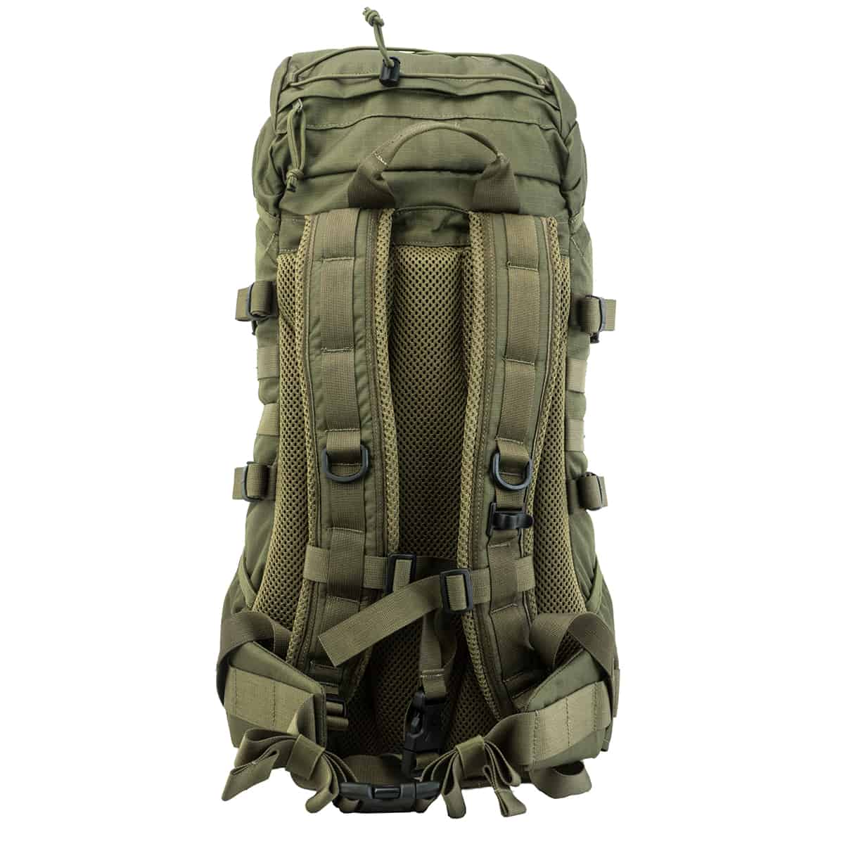 Het hoofdcompartiment biedt ongeveer 30 liter opslagruimte, maar er kunnen dus extra tassen worden toegevoegd. Het MOLLE systeem is niet afhankelijk van MOLLE tassen van een bepaald merk.