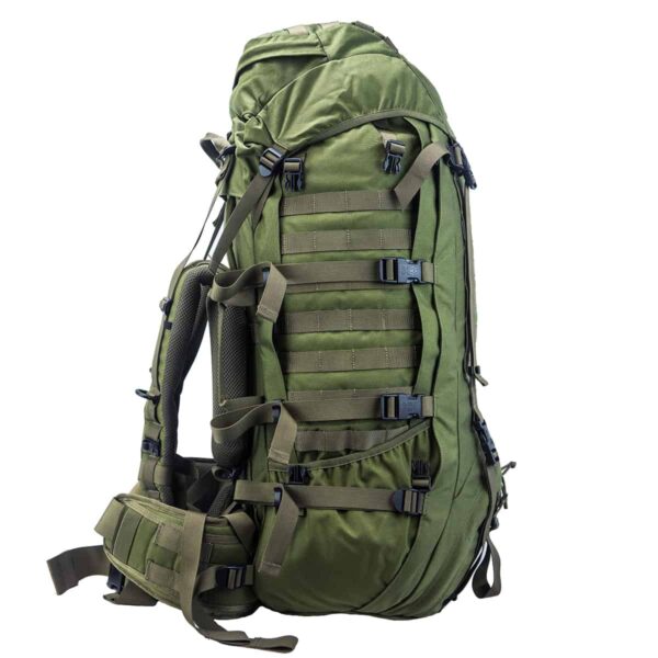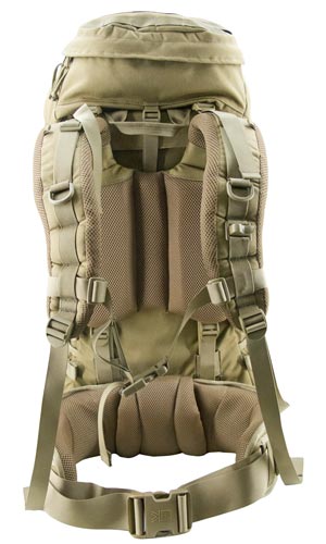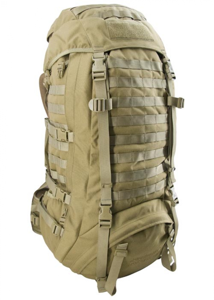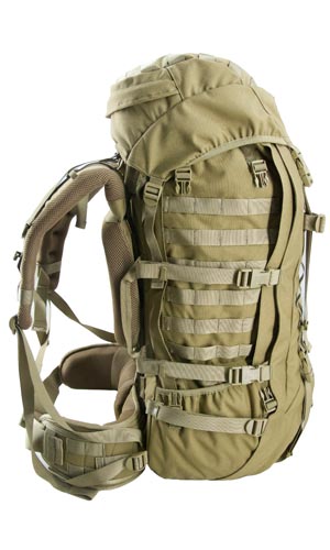 PLCE side pockets and hydration systems can also be used. The SA (size adjustable) back system allows on-the-back and on-the-move adjustments to reduce muscle fatigue. The dividable main compartment and hooped lower entry zip allows easy access to equipment stored at the bottom of the pack.