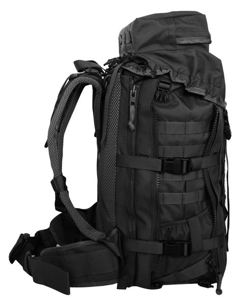 Predator Technical Multi Adaptable Carrier (TECMAC) 50 draws from our experience of load carriage design for equipment carried into combat such as the C4i and ECM. The removable adjustable internal frame allows many different types and sizes of equipment to be carried securely. The lid and kit bag are removable allowing the back system part and mounted equipment to be carried alone. The hip belt can also be concealed when not in use. Features – Palm back system – Concealable waist belt – Quick release belt buckle – S-shaped shoulder harness – Sternum strap – Removable lid – Removable main compartment – Adjustable equipment carriage – Compatible with side pockets (PLCE) – Lid pocket – Stuff pockets – MOLLE webbing front and sides – Ski guides – Compression straps – Carry handle – Rotproof thread – Reinforced with bartacks – Durable water repellent (DWR) – YKK zips Materiaal: KS100e