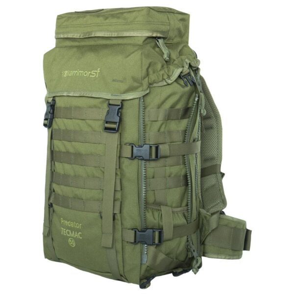Predator TECMAC 50. Code: M010 Inhoud: 50 Liter. Geavanceerde rugzak met verwijderbaar intern draagframe. Enkele onderdelen kunnen eveneens verwijderd worden waardoor het mogelijk wordt een grote verscheidenheid aan uitrusting mee te nemen.
