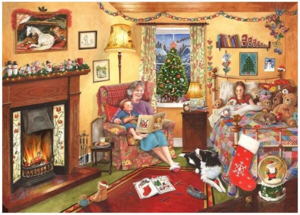 Legpuzzel A Story for Christmas. Nog even een verhaaltje voor het slapen gaan. Natuurlijk bij het vuur, want de slaapkamer is niet verwarmd. Ondertussen is de kerstman druk in de weer!