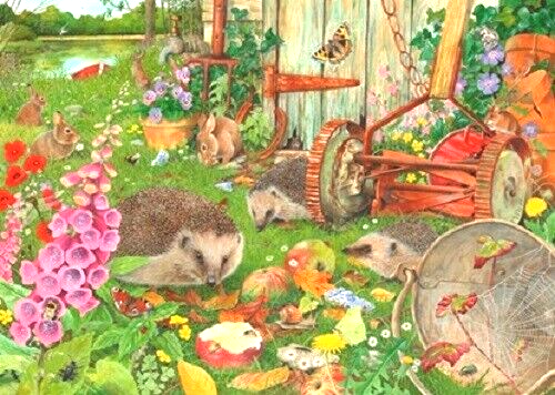 Legpuzzel Bottom of the Garden. Daar achter in de tuin is het goed toeven… – 1000 Stukjes – Elk stukje heeft een unieke vorm – Artiest: Tracy Hall – Afmeting: 48,3mm x 68,6 cm – Komt in een stevige doos – Made in Scotland