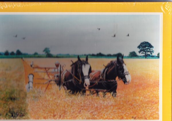Legpuzzel Cutting the Corn. De eerste baan. nog een heel veld met koren te doen. – 500 stukjes – Afmeting: 48 x 35cm – Artiest: Roy Didwell – Made in England