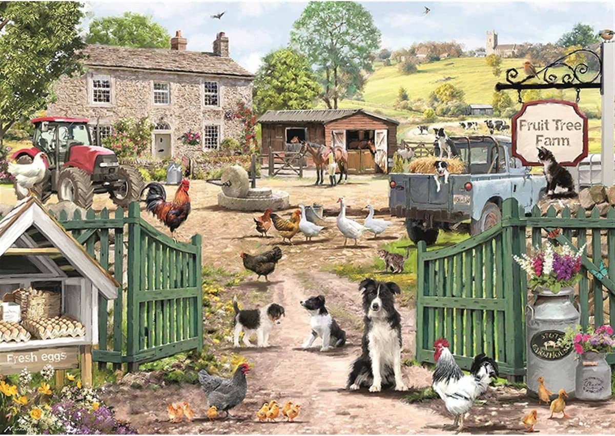 ‘Fruit Tree Farm’ legpuzzel met 1000 stukjes. Het is een en al bezigheid op de Fruit Tree boerderij!