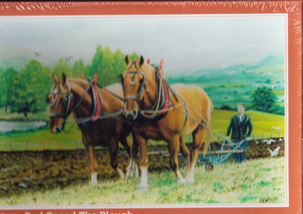 Legpuzzel God Speed the Plough. Een landbouwer, een ploeg en twee oersterke paarden, – 500 stukjes – Afmeting48 x 35 cm – Made in England