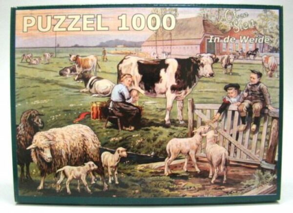 Nostalgische puzzel van Ot en Sien “In de weide” naar een oude schoolplaat van Jetses.. De puzzel bestaat uit 1000 stukjes.