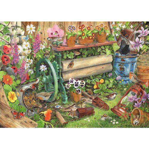 Legpuzzel Robins Nest. Dit roodborstje heeft geen gekke plek uitgekozen voor haar nest! – 1000 Stukjes – Elk stukje heeft een andere vorm – Afmeting: plm. 69 x 48 cm – In een stevige doos – Made in Scotland