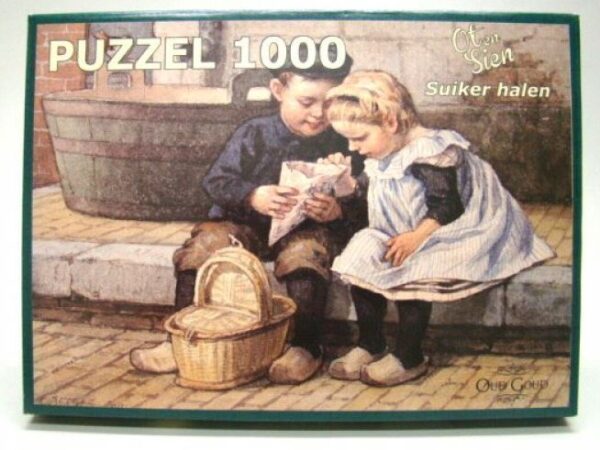 Nostalgische puzzel van Ot en Sien “Suiker halen” naar een oude schoolplaat van Jetses.. De puzzel bestaat uit 1000 stukjes.