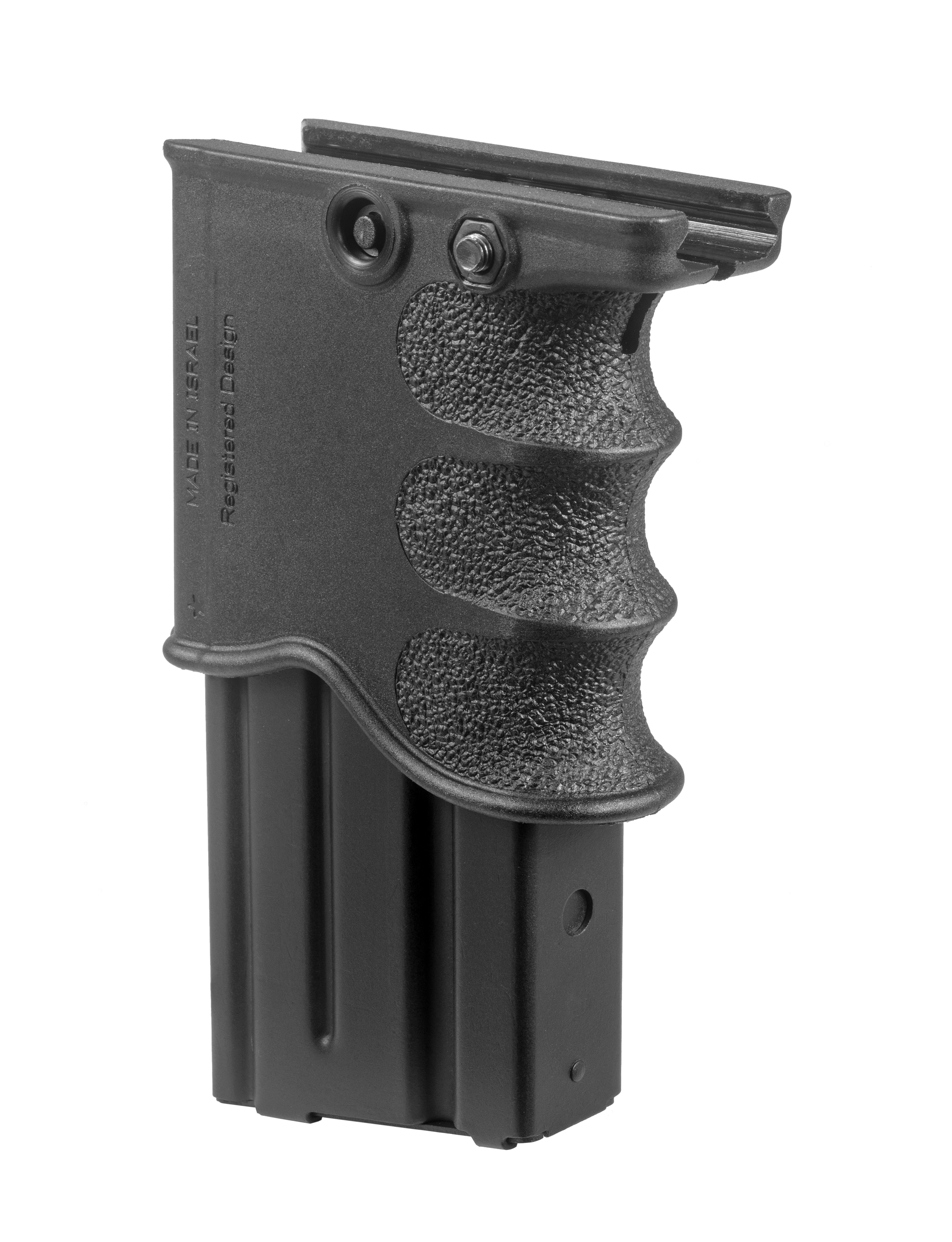 The unique FAB MG-20 2-in-1 tactical device serves as both foregrip and spare magazine holder enhancing tactical efficiency by accommodating an additional magazine on your weapon and facilitates swift magazine reload