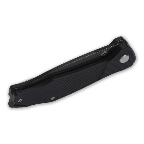 De Raven van QSP Knife is een degelijk en betaalbaar EDC zakmes dat er ook nog eens fraai uit ziet. Dit komt mede door het zwart gecoate gedeelte van het gesatineerde lemmet die gemaakt is van D2 roestvrij staal.