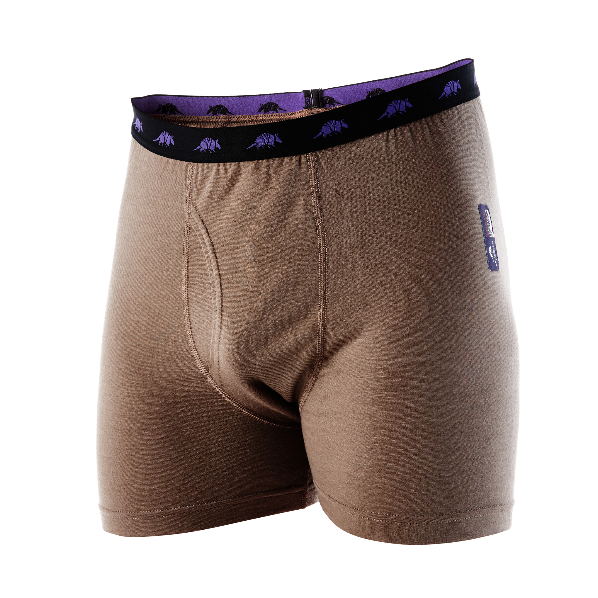 Armadillo Rammy 2 Boxershort met voorsluiting. Kriebelvrije merinowol. Platte naden. Machinewasbaar. Sneldrogend. Doet er lang over om nat te worden van transpiratie, maar voelt ook nat nog steeds warm aan. Van nature brandveilig, smelt niet. Geen etiket aan de binnenkant dat kan prikken.