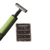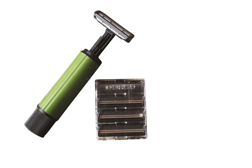 Housed within a robust sheath a simple twist reveals the blade. Just twist the base to reveal the razor.