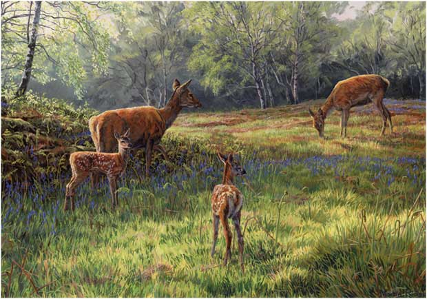 Hertenfamilie dubbele wenskaart. Inclusief envelop. Naar een schilderij van Martin Ridley.