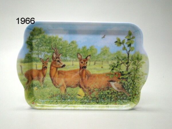 Handig klein melamine dienblaadje. Ideaal voor twee kopjes, of een kopje/mok met theezakhouder, koekje, e.d. Afmeting: 13 X 21 cm Afwasbaar.