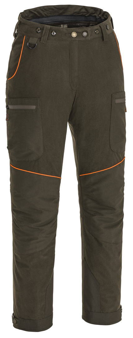 Pinewood Reswick damesbroek. Wind- en waterdichte broek met zachte en comfortabele buitenstof van imitatie suede. Vrouwelijke snit. Stil, soepel en lichtgewicht. Voorzien van ventilatie openingen voor extra luchtcirculatie. Patroonhouders voor zowel hagel- als geweermunitie om gerammel te voorkomen, maar toch snel en gemakkelijk uw munitie te kunnen pakken. Vele praktische zakken incl. meszak. Getapete naden. Elastische taille. Verstelbare broekspijpen met versterkte stukken. Materiaal: Buitenstof en voering 100% polyester.