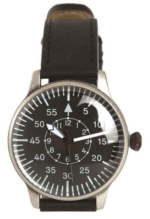Retro Pilotenhorloge met quartz uurwerk en zwarte leren band.