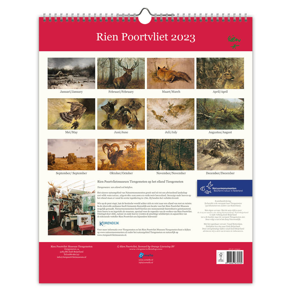 Stijlvolle, grote kalender met natuur tekeningen van Rien Poortvliet. Het leuke van deze Rien Poortvliet kalender is dat je iedere keer wanneer je er voorbij loopt even blijft staan om naar de plaat te kijken, en iedere keer zie je weer iets wat je nog niet eerder opgevallen was.