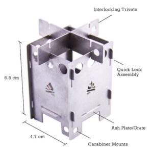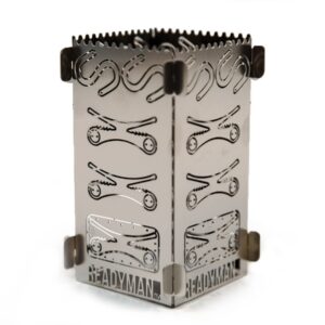 Opvouwbare rvs brander voor vaste brandstoffen zoals hout, kolen, brandstoftabletten.
