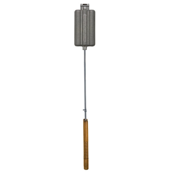 Dog n’ Brat Cooker – Cast Iron. Gietijzeren tang om worstjes boven een vuur warm te maken.
