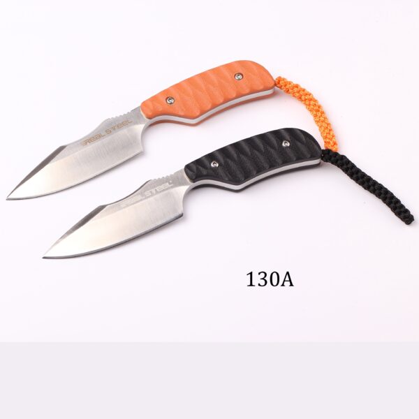 REAL STEEL MINI130A Spear Point NECK KNIFE. De 130A is bedoeld als een EDC mes dat je om je aan de meegeleverde halsketting draagt. Het gewicht is daarom zo veel mogelijk beperkt (56g). Desondanks is het toch een stevig mes geworden met zijn 4mm dikke lemmet uit D2 staal.