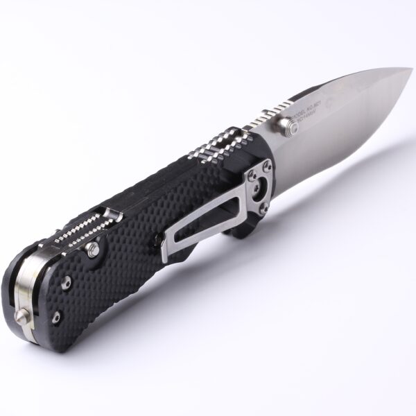 REAL STEEL KNIVES – M21. De M21 ligt stabiel in de hand. Het lemmet is dank zij de twee duimknoppen snel te openen, ook met handschoenen. Het 89mm lange drop point lemmet is van 8Cr14MoV staal en is verkrijbaar met een satijn finish of met een tweekleurige finish. Het mes is voorzien van een glasbreker en veiligheidsriemsnijder.