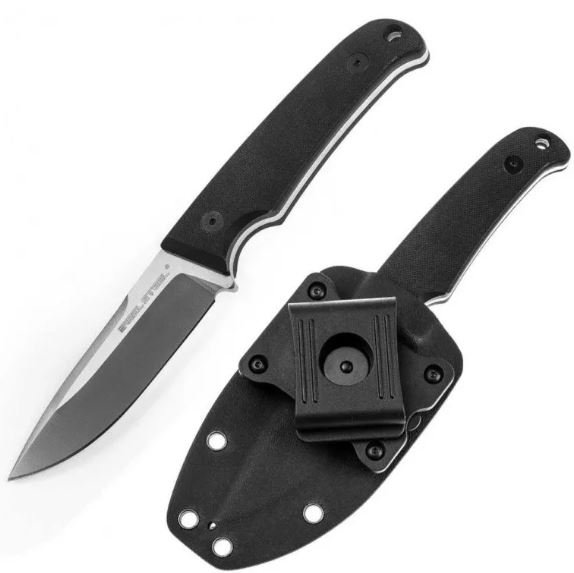 Real Steel Knives Pointman. De Pointman is de vaste versie van het populaire H6 vouwmes, het lemmet meet 95 millimeter en weegt 181 gram. Het kenmerkende droppoint-lemmet is perfect geïntegreerd in het silhouet van het vaste ontwerp van de Pointman. In deze versie krijg je een zeer veelzijdig en duurzaam mes die altijd bij de hand kan zijn dankzij de draaibare riemclip.