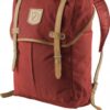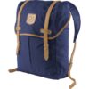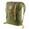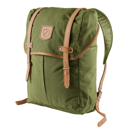 Rucksack No.21 Medium. Klassieke rugzak in klassieke Fjallraven-stijl van sterke gewaxte G-1000 stof met accenten in naturelkleurig leer.