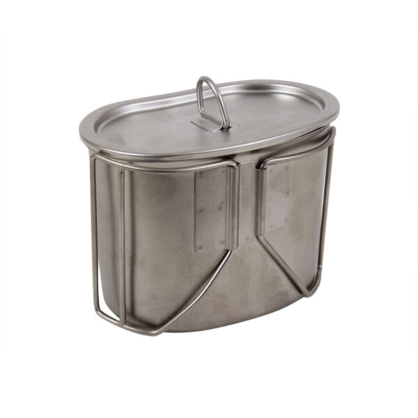 RVS deksel dat past op Nederlandse en Amerikaanse legermokken. Niet op de Britse, Spaart brandstof, brengt water sneller aan de kook en houdt insecten en vallende dennenaalden uit je drinken.