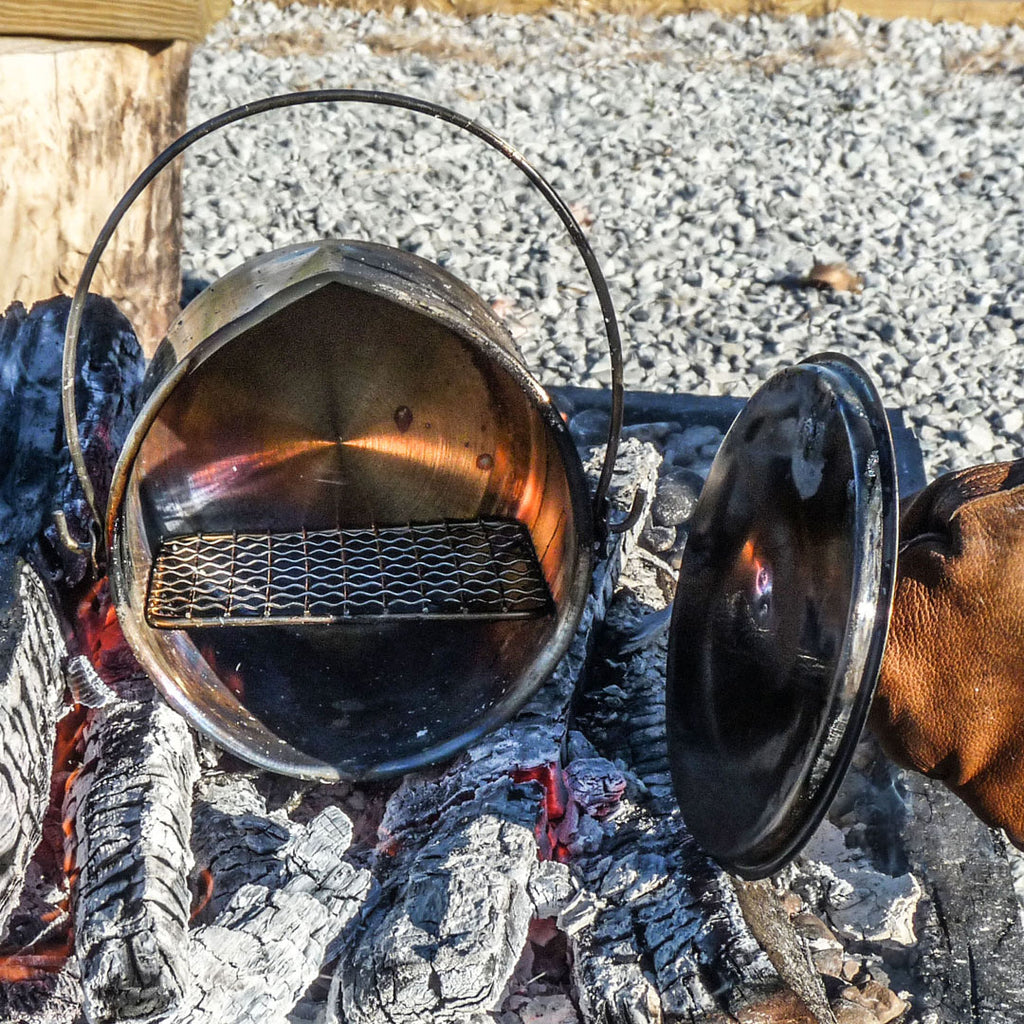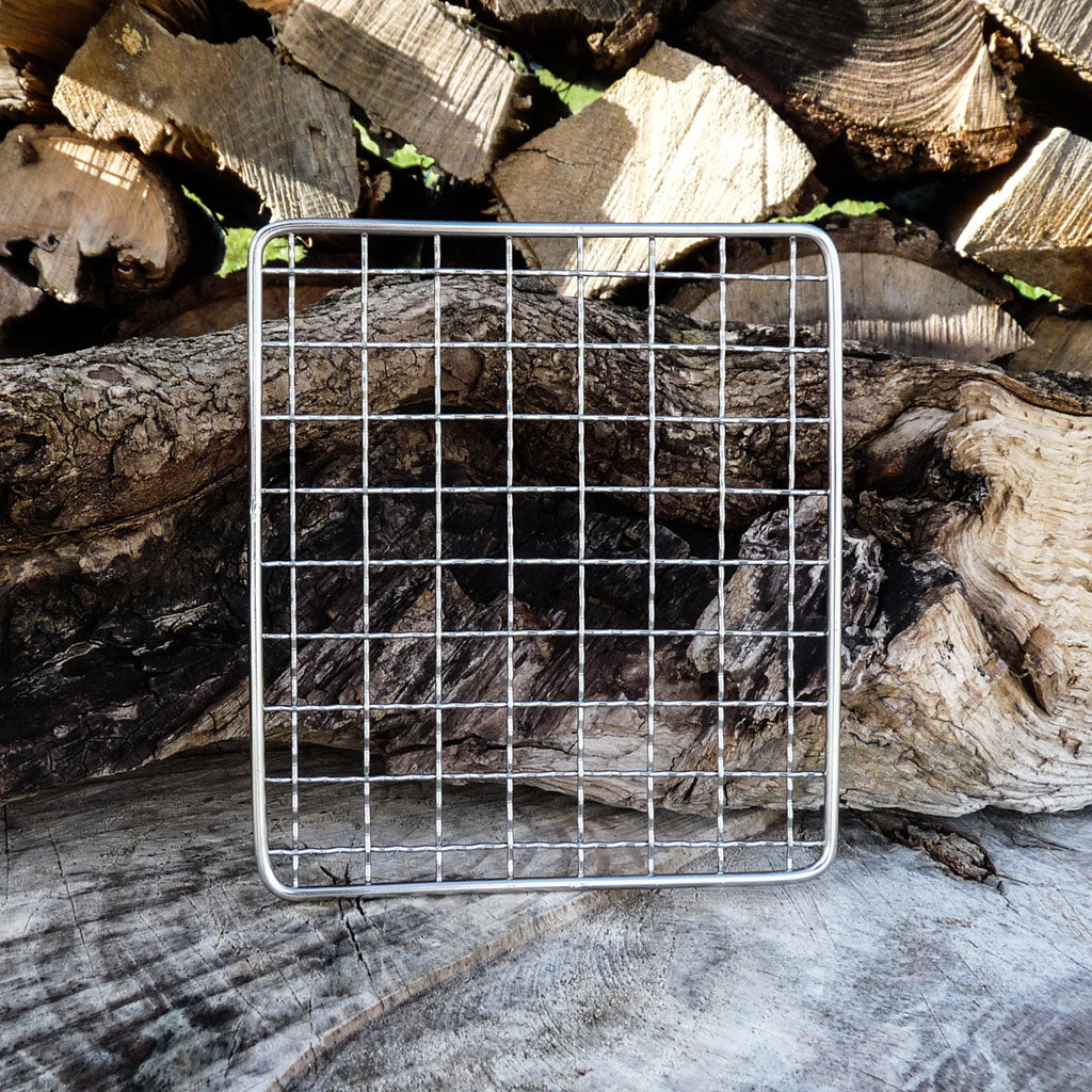 Pathfinder RVS Grill Medium 14×16 cm. De Pathfinder Grill is een lichtgewicht RVS grill rooster die op een verscheidenheid aan manieren boven het vuur geplaatst kan worden. Bijvoorbeeld op een paar veldkeien of bakstenen (nooit NATTE veldkeien in of kort bij een vuur leggen!)